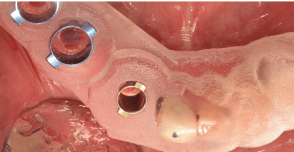 但在擁有完整數位工作流的診所裡,這卻是一個展示應變能力的絕佳時刻。Dr. Lee 迅速調整策略,決定提早啟動右側的治療,並大膽採用「導引式手術」搭配「立即受力」。這意味著病患將在手術當天就獲得固定的臨時贋復物,徹底告別活動假牙的夢魘。